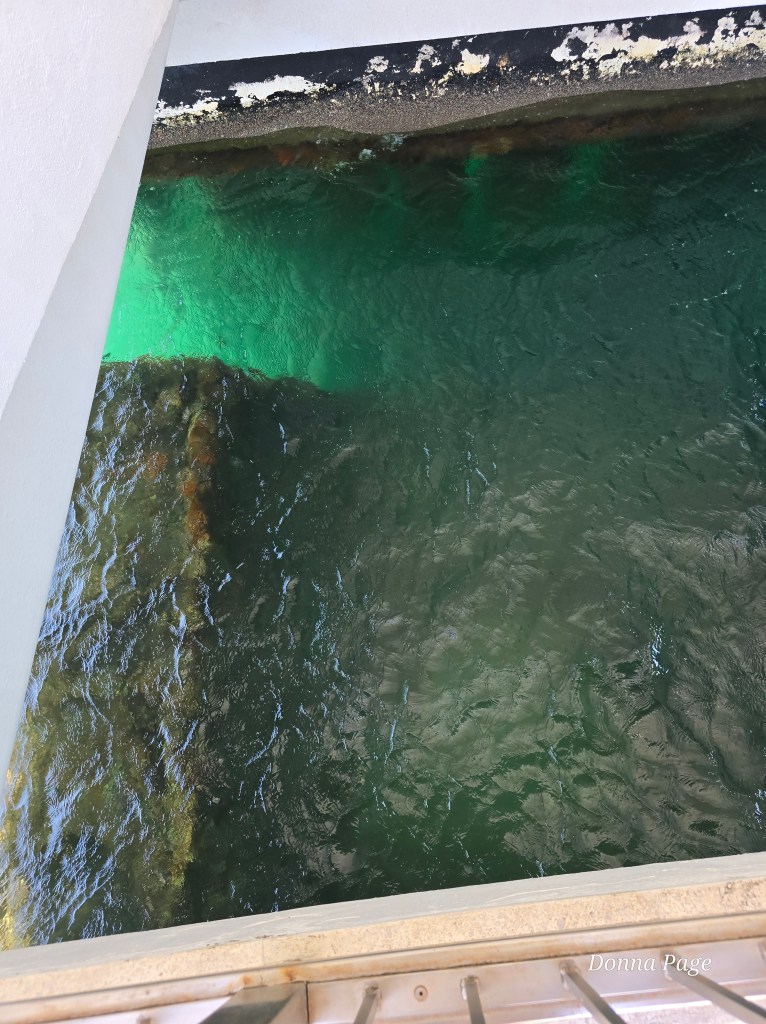 Looking over the edge of the barrier, the first thing I notice is two fish. Silver with black stripes down their bodies, to these fish, this spot is a good place for food.